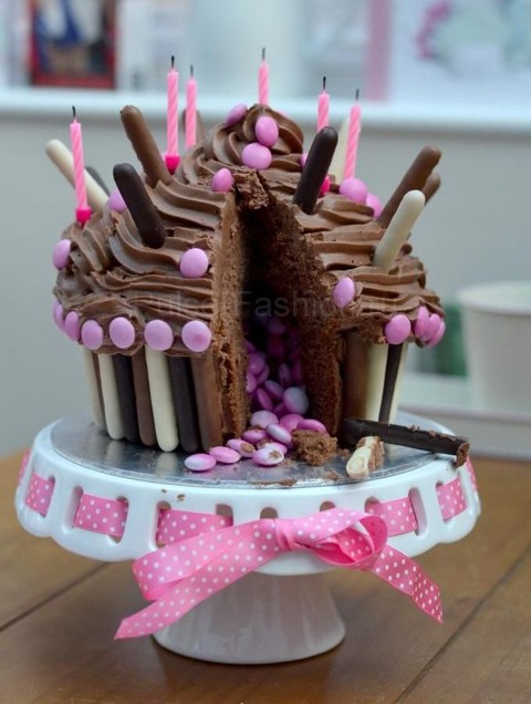 Помните самое главное, чем выше будет ваш торт, тем больше в нём будет драже и когда вы будете резать торт, то эффект конечно будет более ярким. В низких тортах помещается мало конфет, поэтому эффект высыпающейся начинки не такой удивительный.