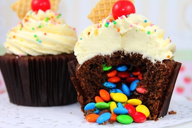 По такому же принципу можно приготовить кексы-пиньята и капкейки с сюрпризом.