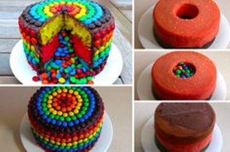 Кстати, говорят что в некоторых странах такой торт готовят по особому случаю. Когда родители идут на узи и узнают пол будущего ребёнка, врач не говорит им сразу, а пишет на листочке бумаги, кто будет, они не смотрят в листочек. С этим листочком будущие родители идут к кондитеру, отдают этот листочек. Кондитер выпекает торт. И когда дома, всей семьёй режут торт, то узнают кто же у них родиться. Если драже розовые или красные, то будет девочка, если же конфетки голубые, зелёные, жёлтые, то будет мальчик. Вот такая вот интересная идея).