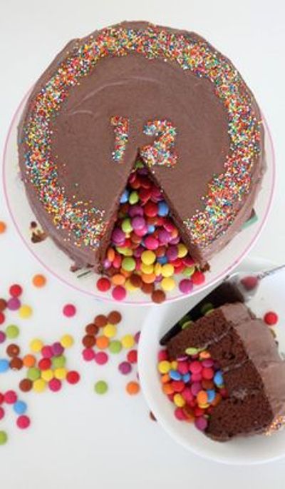Торт-пиньята — это необычный торт, а торт с сюрпризом. Обычно внутрь такого торта кладут различные конфеты, драже, M&M's, мармелад, ягоды, небольшие печенюшки, шоколадные фигурки, кондитерские посыпки и т.п. Как начинку для такого торта вы можете использовать любые свои любимые сладости.
