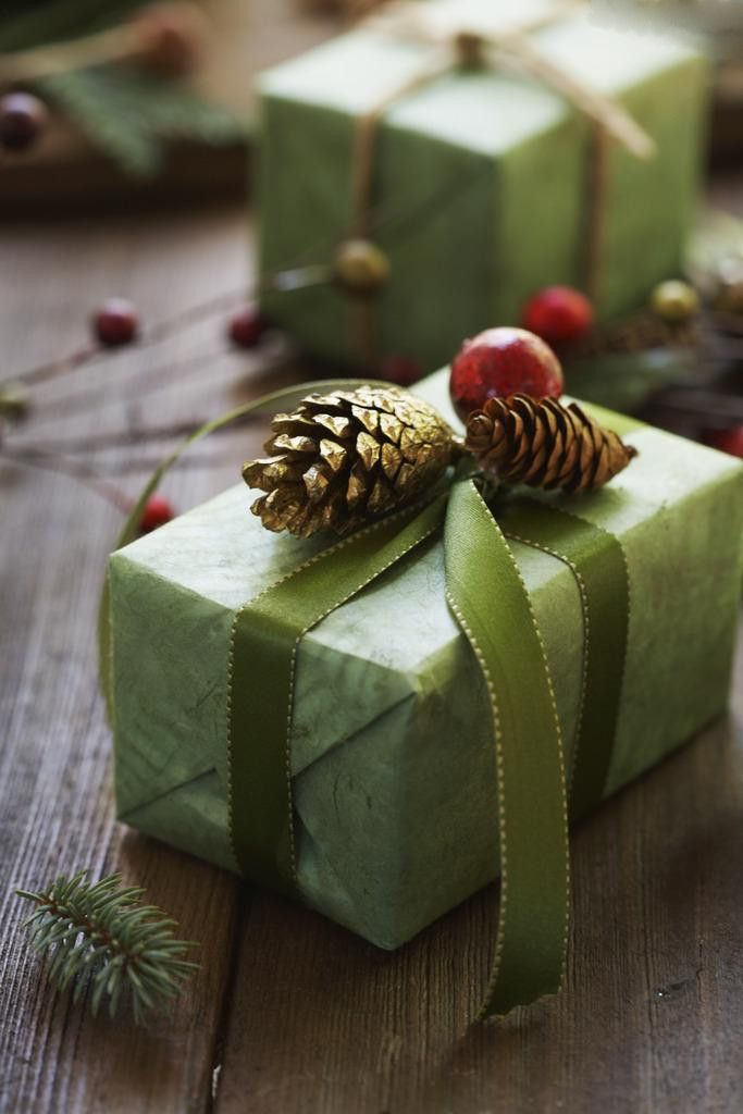 4. Шишки в новогоднем декоре подарков.