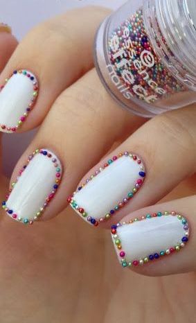 Ещё один вариант маникюра рамки-просто обклеить ноготь по бокам круглыми бусинками или сделать горошки лаком.