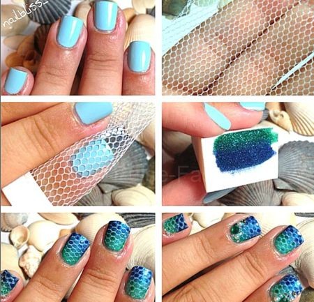Очень оригинально будет смотреться маникюр в мелкую сеточку. Для этого вам необходимо найти плотную мелкую сетку и приступать.