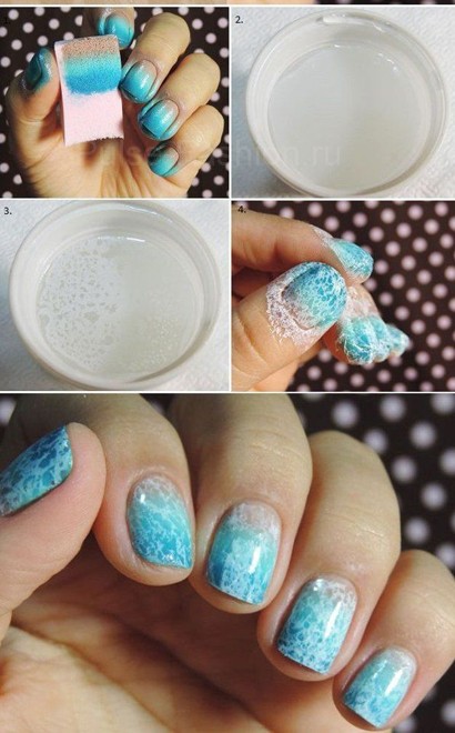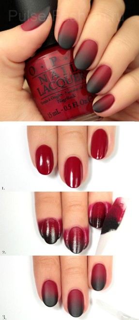 Популярный и актуальный маникюр омбре, т.е. градация от темного цвета к более светлому и наоборот, можно легко сделать в домашних условия. Всё, что вам понадобится-это несколько лаков и спонжик или кусочек поролона.
