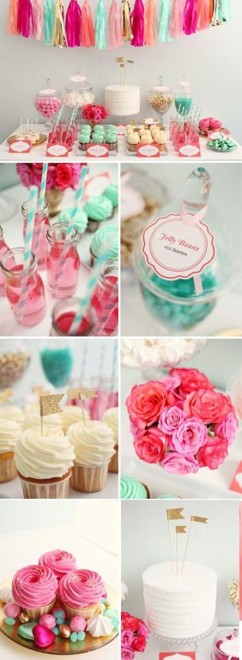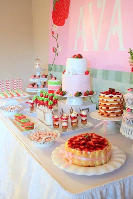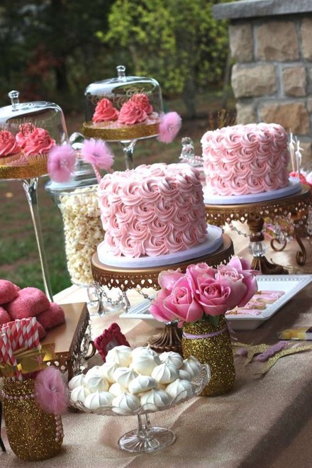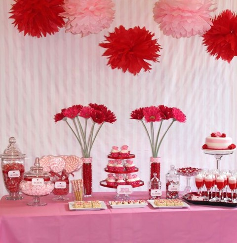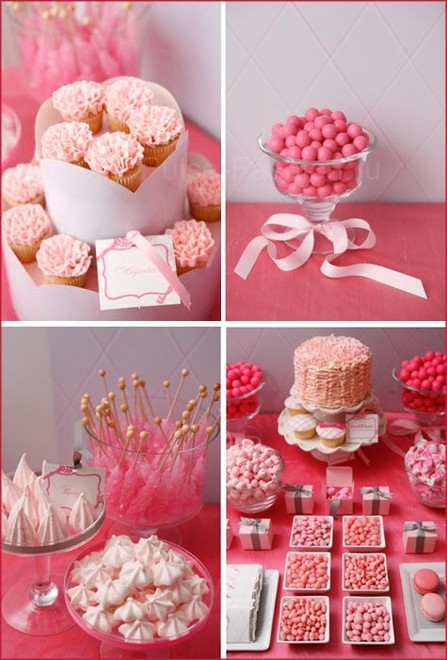 Десертный стол по поводу дня рождения, девичника или других женских праздников принято оформлять в приятных цветах — красный, розовый. Вообще, вы можете выбрать любой цвет, главное-чтобы всё было сделано стильно.