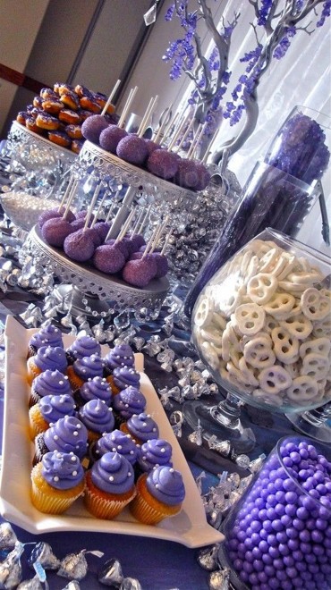 Так как мужчины более серьёзные и сдержанные, нежели прекрасная половина, то десертный стол по поводу праздника мужчины нужно оформлять в более сдержанных и строгих цветах- синий, фиолетовый или даже чёрный. Тут главное не переборщить с украшениями, всё должно быть лаконично и строго.