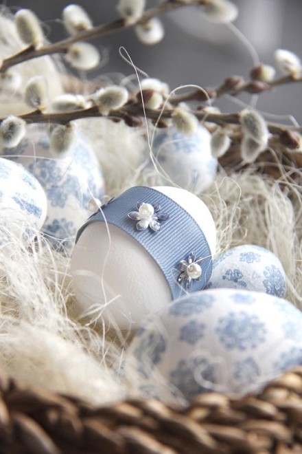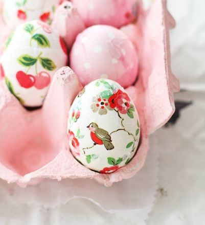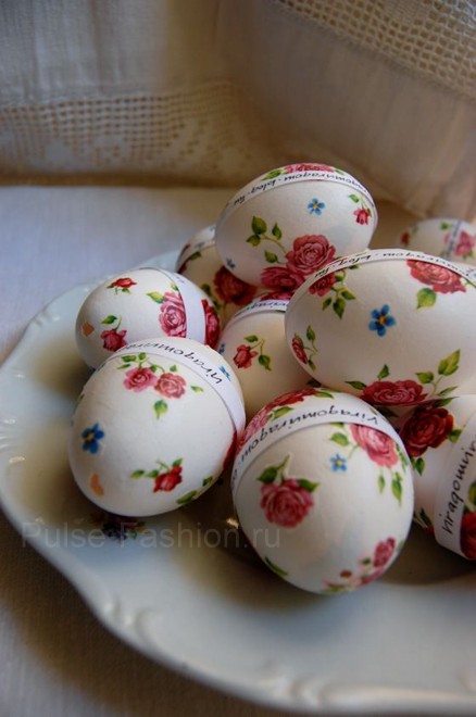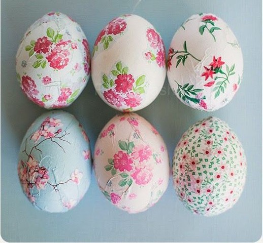 Это самый простой способ получить самые оригинальные яйца на Пасху. Самое главное-подготовиться заранее, купить несколько видов красивых салфеток с рисунком цветов, птиц или другим узором.