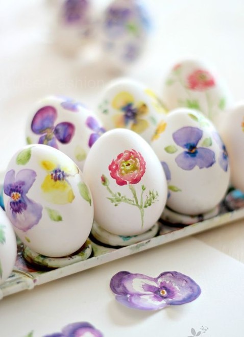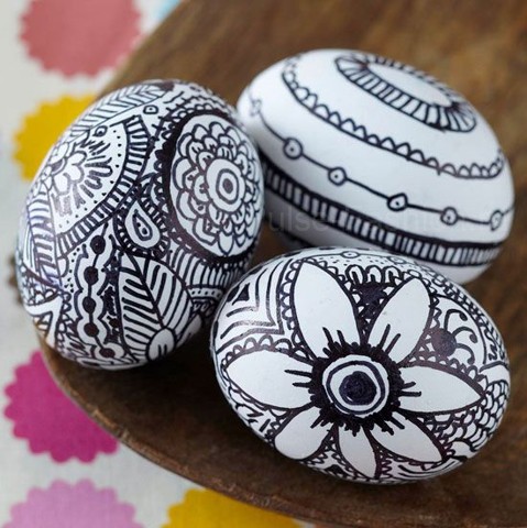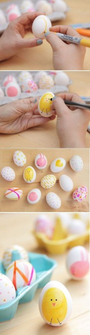 Если вы неплохо рисуете, то вам вполне под силу будет разукрасить яйца своими руками с помощью красок, маркеров или фломастеров. Это могут быть незамысловатые рисунки, типа цветочков, смайликов, полосочек и т.п.