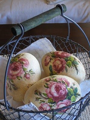 А вот фото того, какими могут быть готовые пасхальные яйца в технике декупаж.