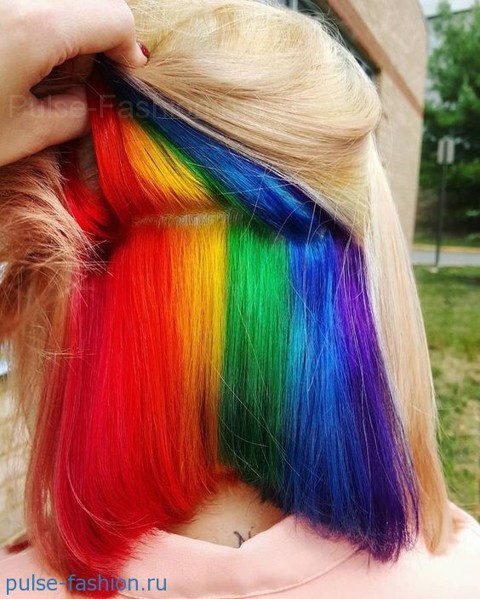 Как вариант для смелых девушек — окрашивание омбре в яркие цвета.