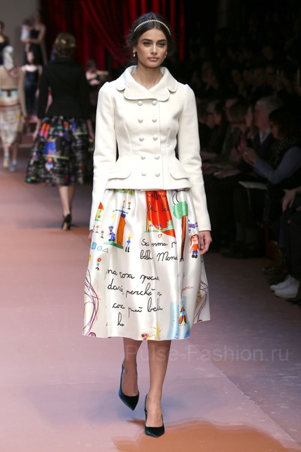 Практически во всех коллекциях представлено много белых нарядов. D&G, Valentino и многие другие создали платья в светлых тонах. Это и однотонные наряды, и наряды украшенные разнообразными актупльными принтами.