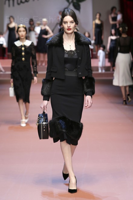 1. На первом месте осенью-зимой будет чёрный цвет. Коллекции все дизайнеров наполнены чёрными нарядами. Но они вовсе не смотрятся мрачно, так как разбавлены дополнительными яркими аксессуарами или броским макияжем моделей. Коллекции таких именитых дизайнеров как Dolce&Gabbana, Chanel, Valentino, Dior.