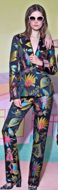 Очень яркие тренд этого сезона-белые пиджаки с ярким флоральным принтом. В коллекциях многих дизайнеров были представлены пиджаки именно такой раскраски-чисто белый пиджак, украшенный яркими рисунками цветов, листьев, насекомых, птиц и т.п.