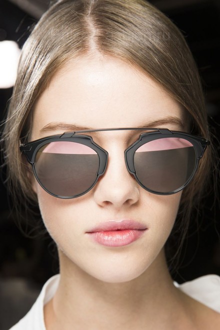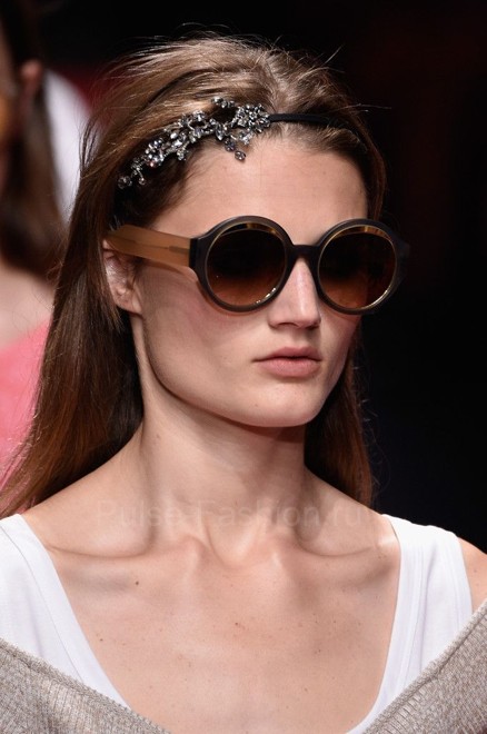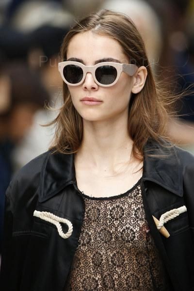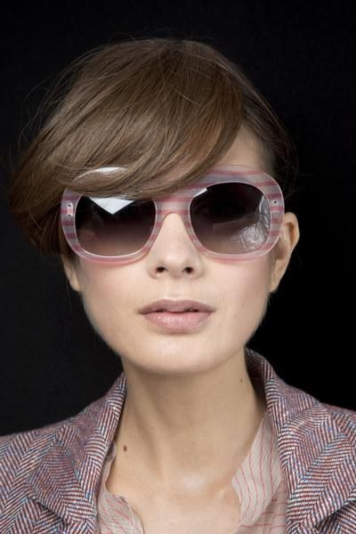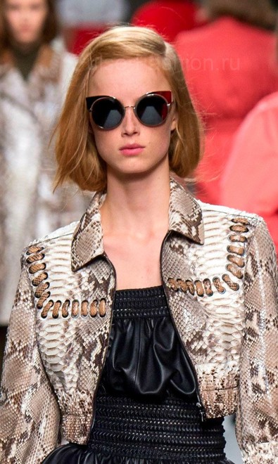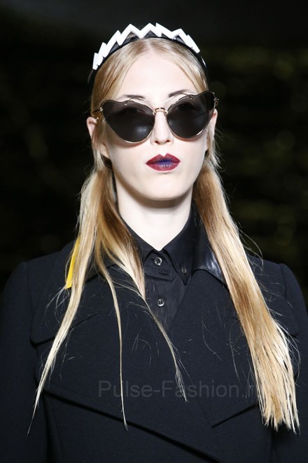 Очень оригинальные модели очков продемонстрированы в коллекции Fendi. Дизайн солнцезащитных очков сочетает в себе несколько видов оправ. На первый взгляд кажется, что это очки-кошечки, но если присмотреться, вы заметите, что очки состоят из обычной круглой оправы, дополненные стильной полукруглой дужкой, которая и завершает дизайн, придавая очкам форму кошечек.