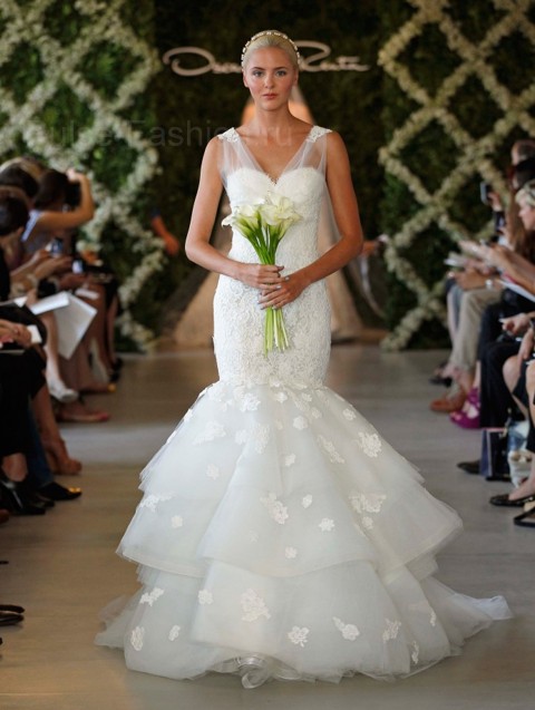 Шантильи кружево, шелк, органза, вышивка ручной работы- всём это коллекция свадебных платьев Оскар де ла Рента (Oscar de la Renta) . Коллекция выполнена в классическом романтическом стиле, элегантная и изысканная.