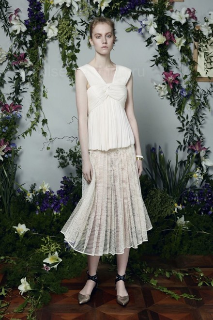 Юбка плиссе в мелкую складочку произвела приятное впечатление. С разрезом, на мой взгляд, очень вызывающе. Еще немного удивляет, что нету юбки-карандаш, хотя это вечная классика! Хотя у некоторых производителей, я встречала в анонсе на следующую весну.
