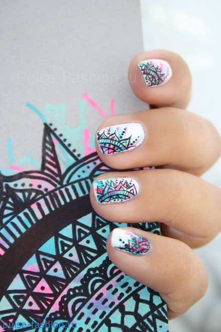 Рисунки и узоры на ногтях очень стильно выглядят.