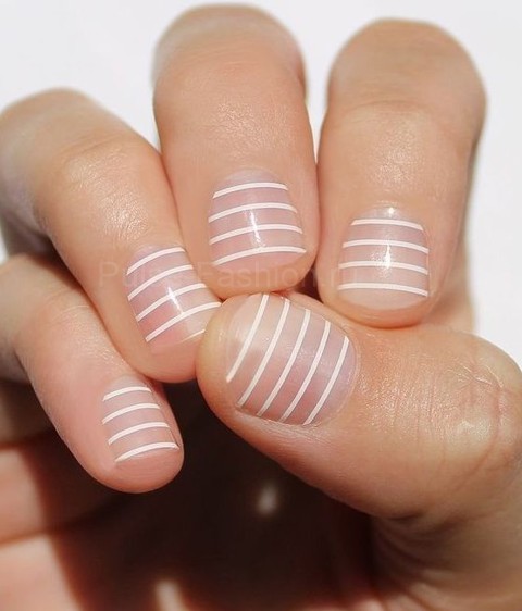 Белые линии отлично смотрятся на коротких ногтях.