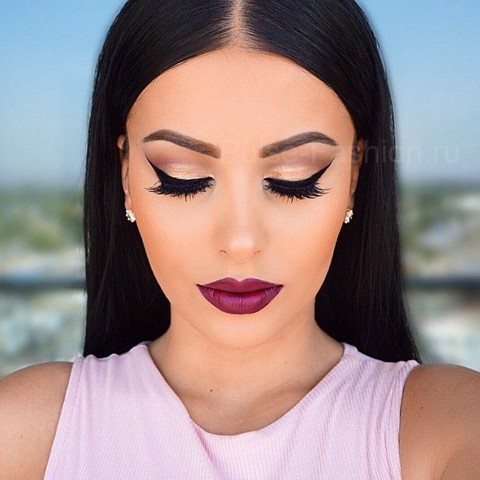 2. Нельзя сочетать губы,накрашенные красной помадой, с чёрным или тёмным макияжем глаз-это признак дурного тона. Это позволительно делать в исключительных случаях и только в вечернем макияже;