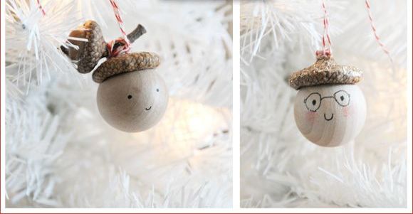 Жёлуди также как и шишки очень часто используются в новогоднем декоре, в том числе и для украшения ёлочных игрушек. Жёлуди и сам по себе может стать неплохим украшение. Вы можете покрасить жёлудь полностью или только шапочку ореха акриловой краской и присыпать блёстками.