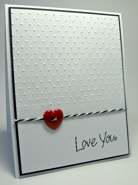 Помимо пуговиц, в декоре открыток можно использовать любые вещи и материалы, например, это может быть маленькая прищепка. Приклейте прищепку на открытку и приколите ею сердце.