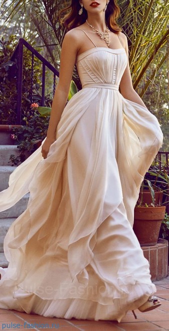 Платьица для вечера с шифоновым плиссированным низом – еще одна актуальная тенденция сезона. Легкие, роскошные, воздушные. В общем, советуем.
