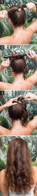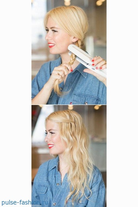 Очень просто способ сделать волнистые кудри с помощью утюжка. Заплетите волосы в косу, а затем проведите утюжком по всей длине сверху вниз.