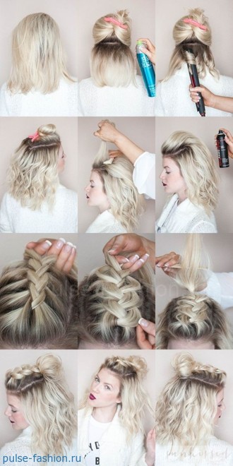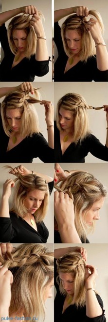 А многие даже не подозревают, что на коротких волосах можно заплетать косы. Мало того, ещё и делать разнообразные вариации причёсок.