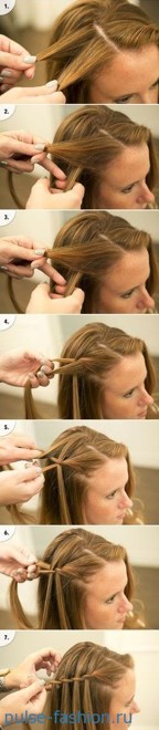 Плетётся водопад по типу колоска, разница лишь в том, что прядь, которую вы захватываете в косу, не вплетается, а остаётся свисать водопадом из косы.