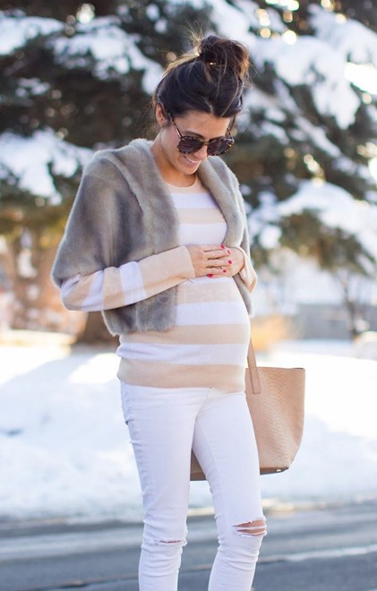 Если же вы не скрываете свою беременность, и не стесняетесь носить облегающую одежду, вы можете выглядеть очень стильно и модно.