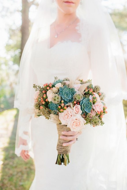 К тому же суккуленты имеют несколько огромных плюса. Первое: если вы-ярая защитница природы и против того, чтобы цветы срывали, так они погибнут через несколько дней, то суккуленты отличный вариант для вас, так как после свадебного торжества вы можете высадить эти растения в горшки или на клумбу. Второе-растения данного вида сохранят свежесть на протяжении всего дня свадьбы, так как благодаря своим толстым листьям, они отлично накапливают влагу. И третий не менее важный плюс-эти растения гипоаллергенны, поэтому отлично подойдут для невест, у которых аллергия на цветочную пыльцу.