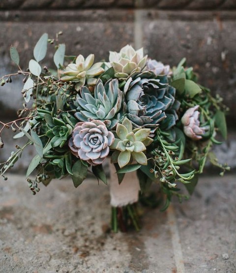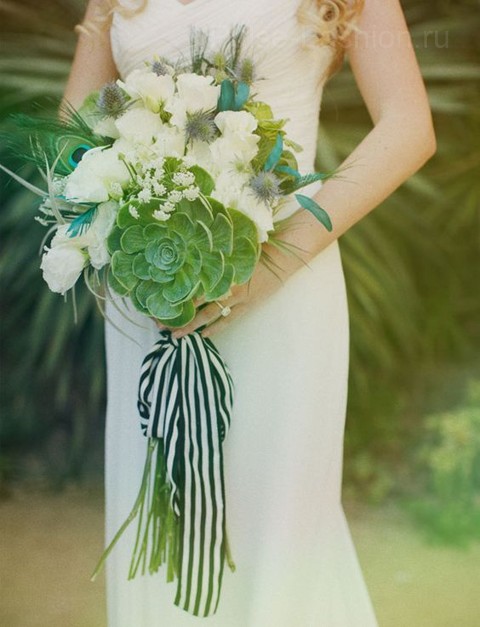 Вы можете выбрать для своего свадебного торжества букет, полностью состоящий только лишь из суккулентов.