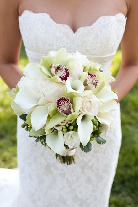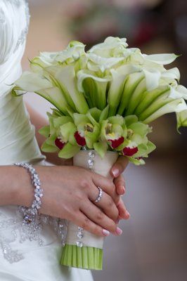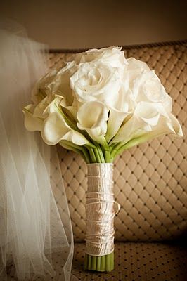 Так как белый-это традиционный свадебный цвет, начнём с букетов из снежно-белых калл.