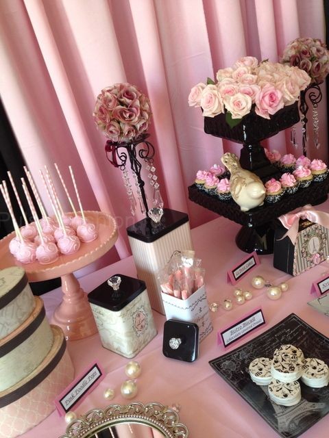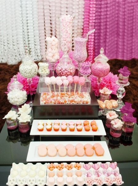 Десертный стол по поводу дня рождения, девичника или других женских праздников принято оформлять в приятных цветах — красный, розовый. Вообще, вы можете выбрать любой цвет, главное-чтобы всё было сделано стильно.